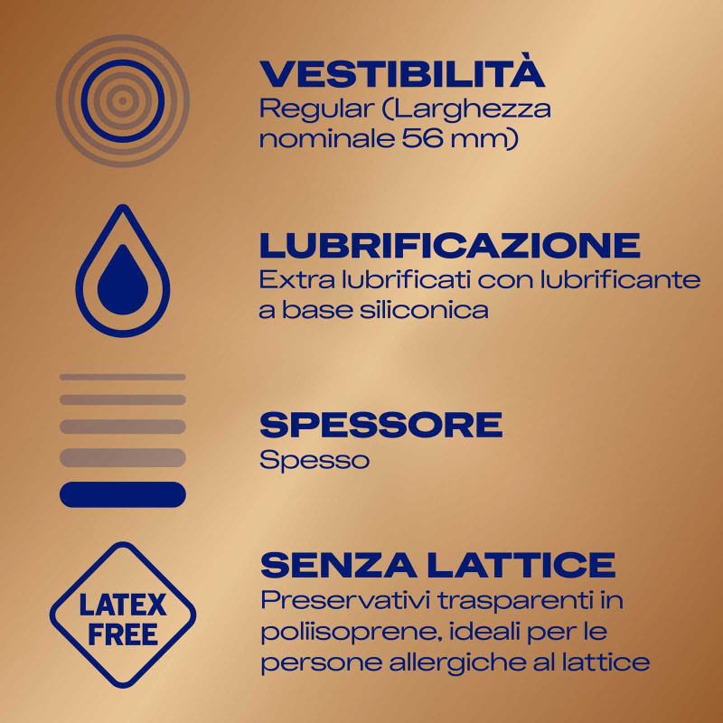 I preservativi sono un modo per prevenire le malattie sessualmente trasmissibili e le gravidanze indesiderate. Vedi le istruzioni contenute all’interno della confezione per un uso corretto.