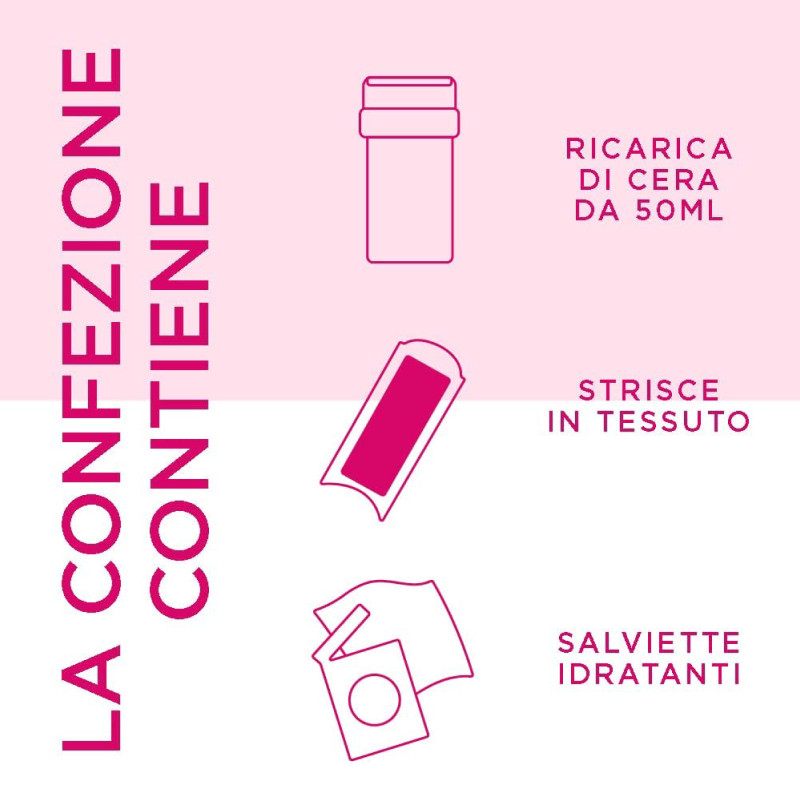 Ricarica, realizzata con una formulazione in gel che sfrutta la tecnologia Easy-Gelwax, rimuove alla radice anche i peli più corti (fino a 2mm) ed è compatibile con il kit roll-on scaldacera elettrico EasyWax Veet. L'Olio di Mandorle, dalle elevate proprietà idratanti, è particolarmente consigliato per le pelli sensibili e lascia la pelle liscia e morbida fino a 28 giorni. Dermatologicamente testasta per l'uso su gambe, braccia, ascelle, zona bikini. MODALITÀ D'USO CONTENUTO DELLA CONFEZIONE |